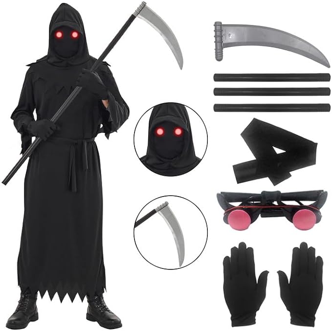> Udekit Grim Reaper Halloween Cosplay Costume with Weapons Glowing Glasses and Mask for Adults Kids GRCostumeSmallNew
